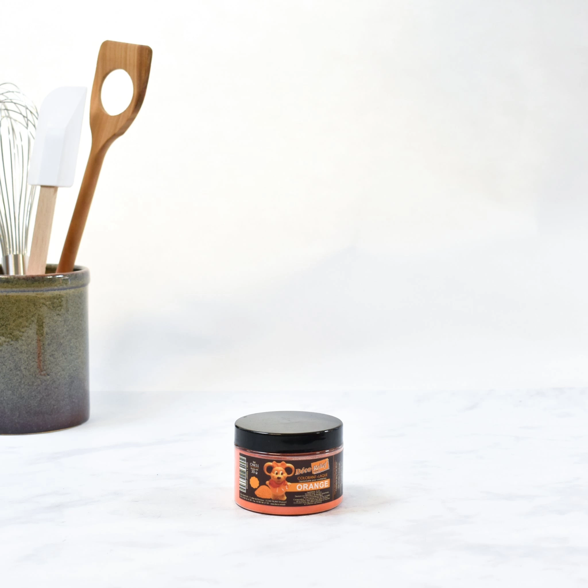 Diese professionelle orangefarbene Lebensmittelfarbe ist fettlöslich, ideal für die Verwendung in Gebäck- und Schokoladenarbeiten.
