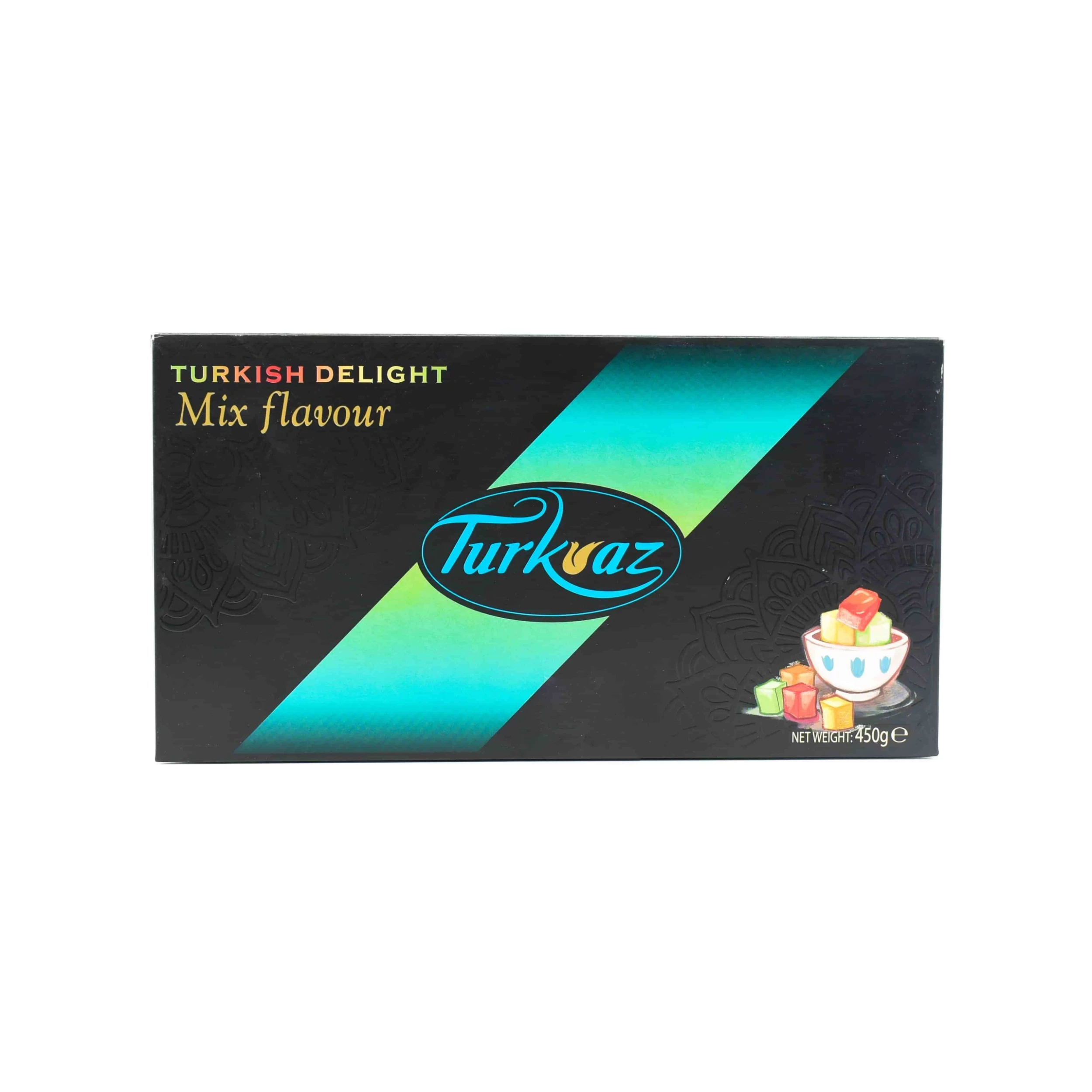 Es gibt viele Geschichten über die Ursprünge der türkischen Freude, und einige sagen, dass es zuerst so weit wie die 14 gemacht wurde th Jahrhundert! Wann immer es das erste Mal geschaffen wurde, türkische Freude ist seit langem ein exotischer Leckerbissen von Menschen geliebt alZutaten: Zucker, Wasser, Maisstärke, natürliche Aromen (orange, Kirsche, Minze), Säureregulator: Citronensäure, Puderzucker (7%), Farbstoffe (E142, E102, E110, E129)