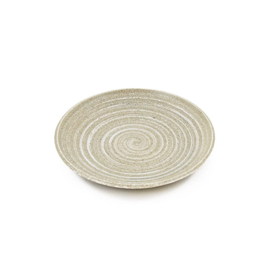 Tatsumak ist das japanische Wort für Tornado, und diese atemberaubende Steingutplatte ist mit einem hypnotischen, glasierten Wirbel verziert. Das Natur-Look-Design erinnert an die Raked-Muster in ruhigen japanischen Sand- und Steingärten.