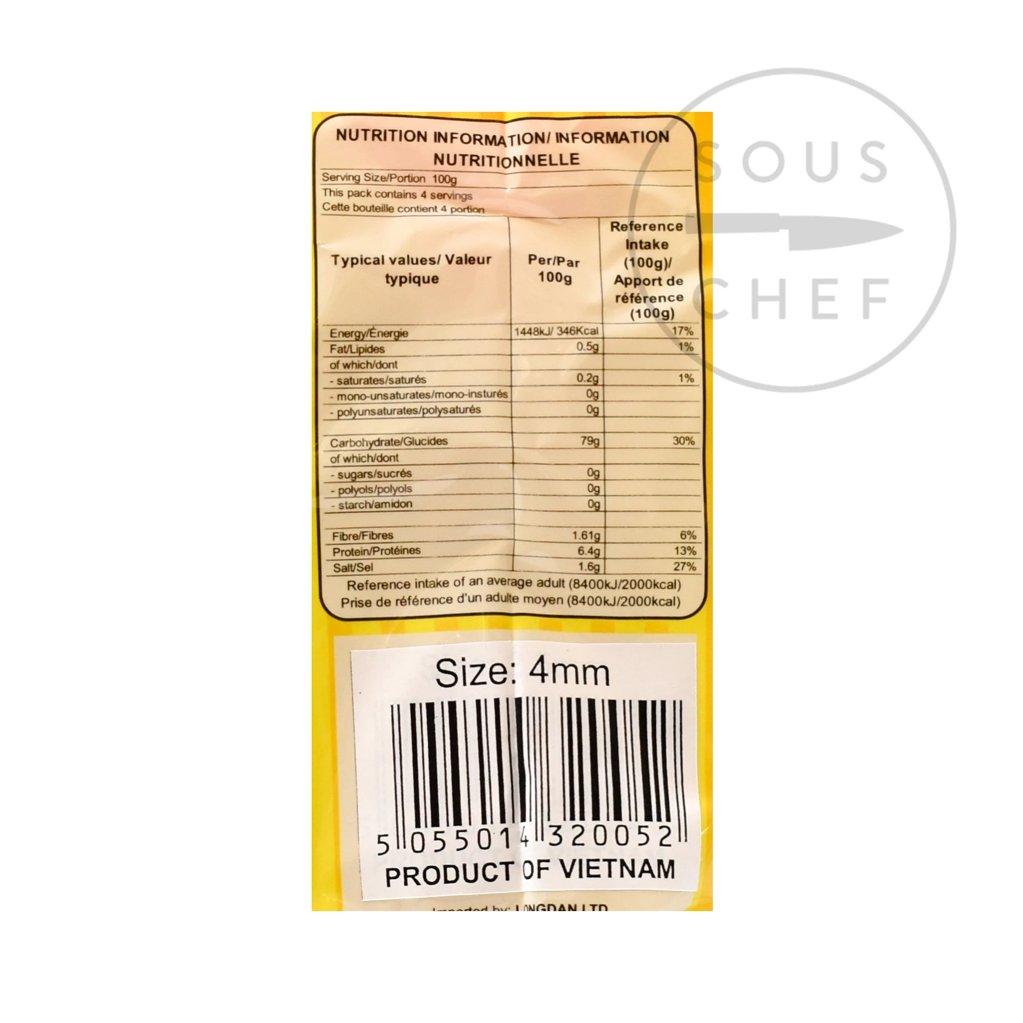 Zutaten: Reismehl (50%), Wasser (30%), Tapiokamehl (19%), Salz (1%),