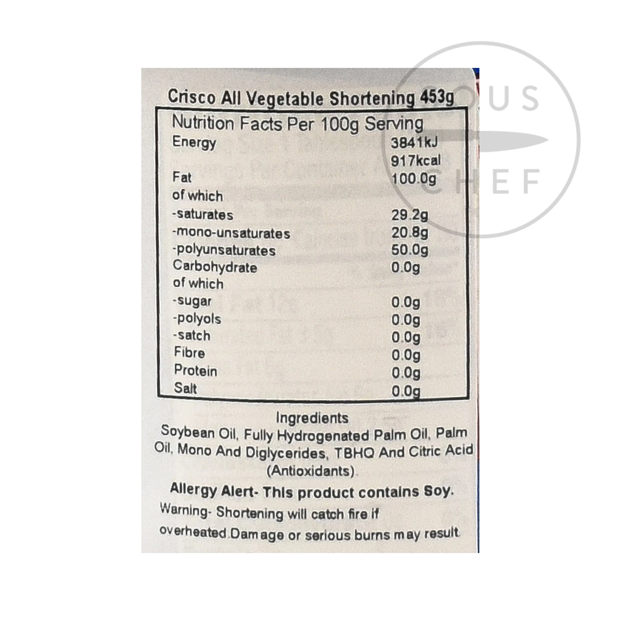 IngreDüngemittel: Soybean Öl, vollständig hydriertes Palmöl, Palmöl, Mono- und Diglyceride, TBHQ und Citronensäure (Antioxidantien). Allergene sind in bold aufgeführt.