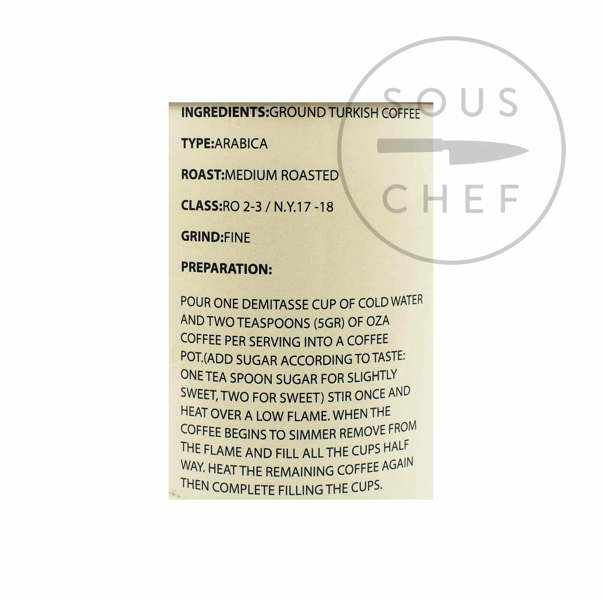 Oza Kahves türkischer Kaffee ist fein gemahlener Arabica Mittelröstkaffee. Traditionell in einem ‘cezve-lange behandelt Topf zubereitet und serviertohne Filterung, genießen Sie im authentischen türkischen Stil mit einem Teelöffel Zucker für ein süßes, reichhaltiges Finish.