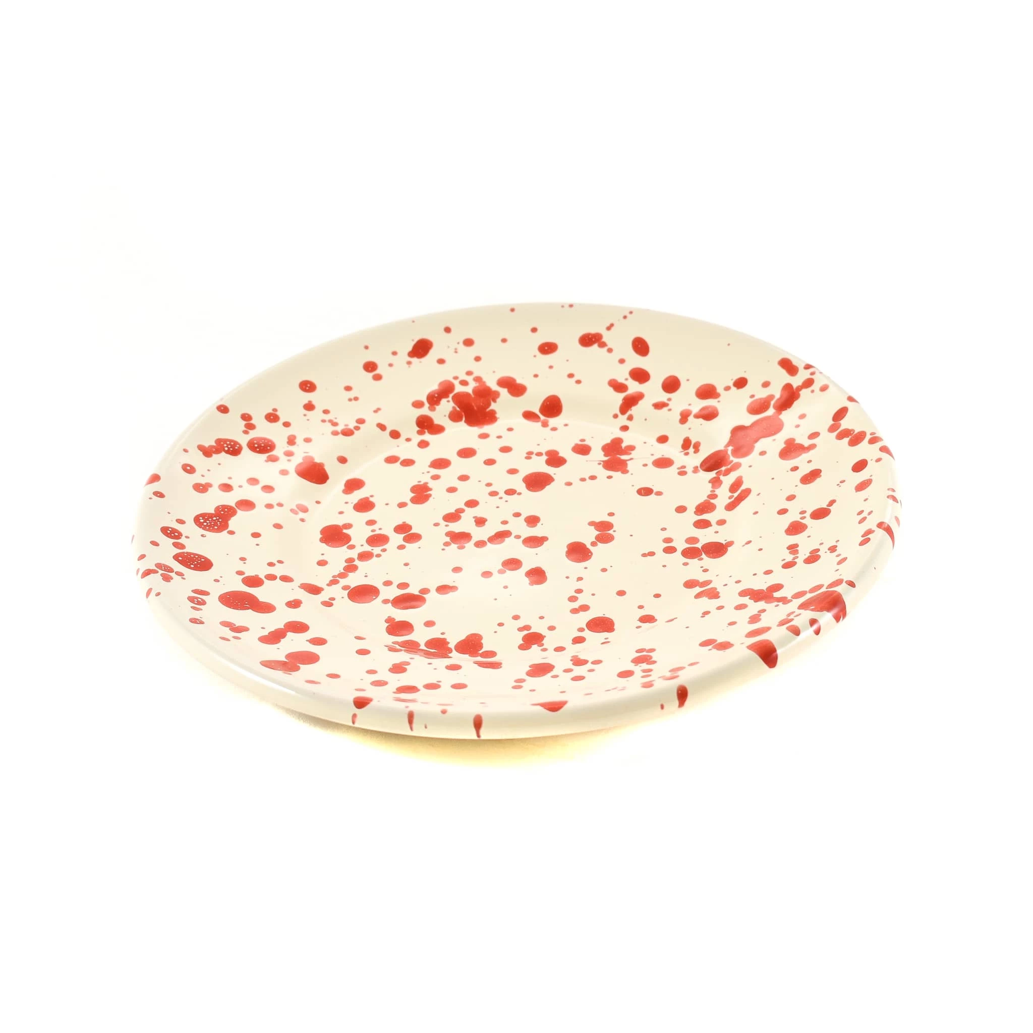 Die Apulien rote Splatter Seitenplatte ist die stilvolle Art, Bruschetta, Burrata und frische Feigensalate zu servieren. Hergestellt in Italien, ist das moderne Geschirrinspiriert vom Meer, mit einem auffälligen Splatter-Design überall.