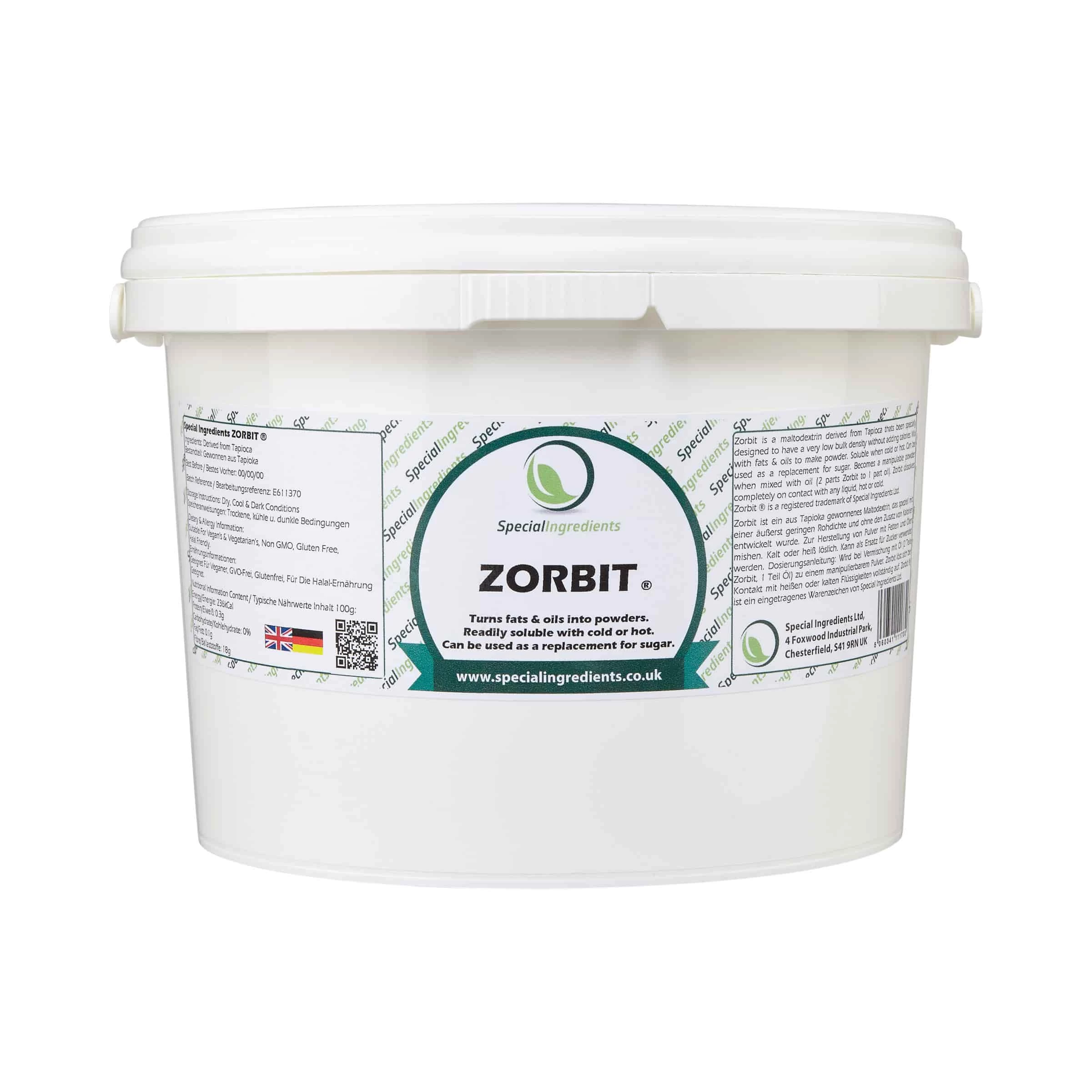 - Es wird zu einem manipulierbaren Pulver, wenn es mit Öl gemischt wird (2 Teile zorbit bis 1 Teil Öl) und löst sich bei Kontakt mit einem beliebigen wässrigen Medium vollständig auf.