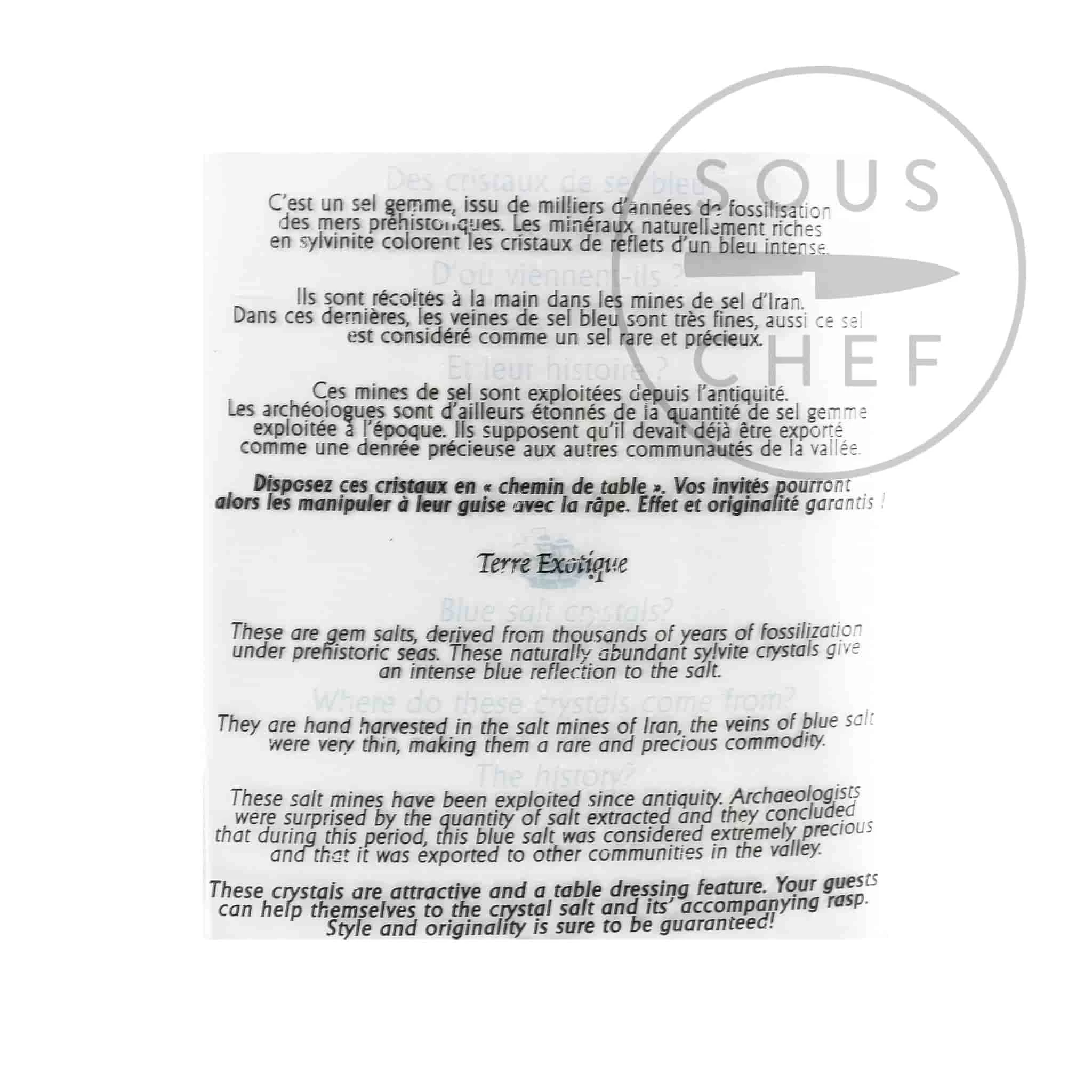 Terre Exotiques blaues Salz aus Persien kommt mit einer Reibe für dramatische Würze am Tisch. Das atemberaubende dunkle Indigo-Salzgitter zu einemfeines Pulver, ideal zum Würzen von Gemüse, Fisch und Fleisch nach dem Kochen. Mit der Reibe inklusive, ist dies ein wunderbares Geschenk.
