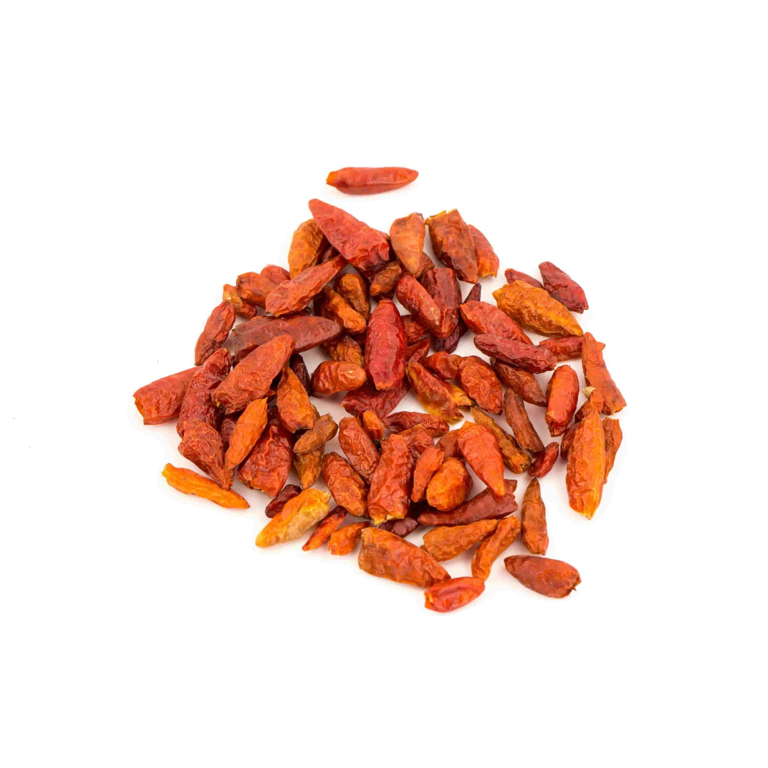Terre Exotiques bird’s eye chilli pepper ist einer der heißesten Chili-Pfeffer der Welt, sicher, Soßen, Eintöpfe und hausgemachte ch würzenIlli-Öle. Der Chilli-Pepper des Vogels ist extrem kraftvoll, mit 9/10 auf der Scoville-Skala – verwenden Sie es sparsam! Fügen Sie diese ganzen Chilis zu Chili con Carne, Fleisch Eintöpfe und Tomatensoßen hinzu.